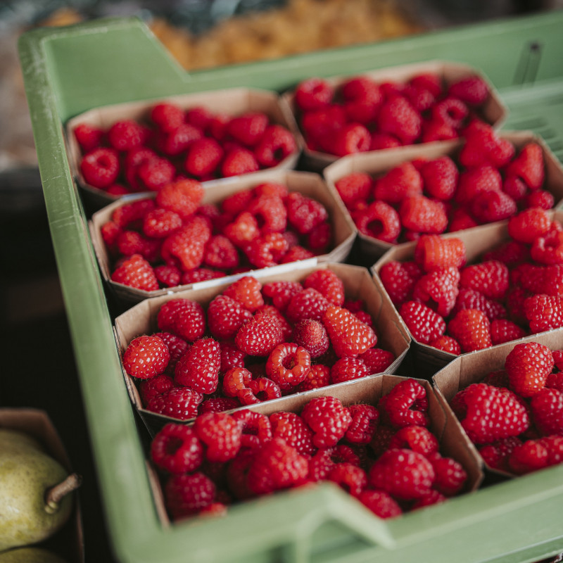 Already at the beginning of June we harvest the first raspberries, so there is next to the strawberries another delicious berry for snacking or baking. Already in mid-June it goes around with raspberries and the time to make jam has come. From mid-July, our raspberries make a break, so that it is called again from the end of August, ran to the small berries with the giant taste.