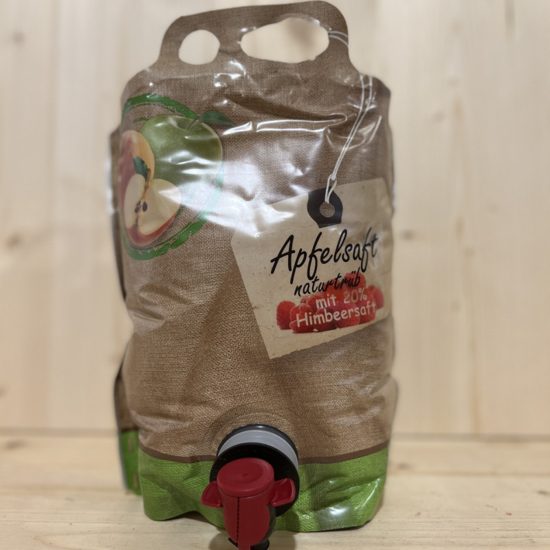 Jus de pomme framboise naturellement trouble - Sac de 3 litres